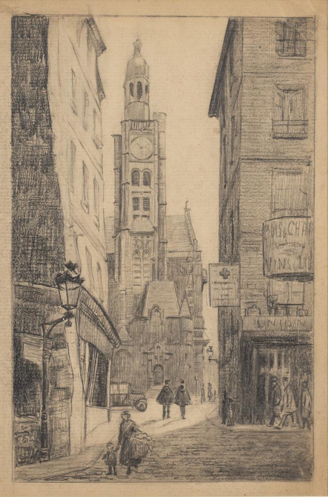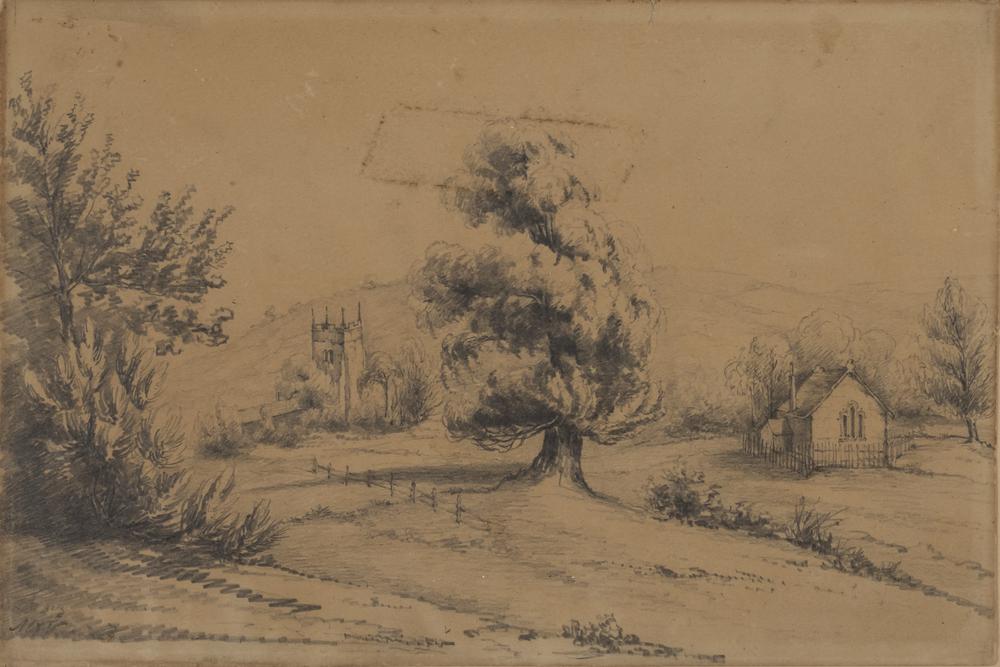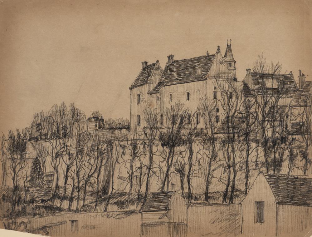 Veduta di castello, grafite e biacca su carta, cm 24x32