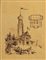 Veduta di castello, inchiostro su carta, cm 20x26, firmato