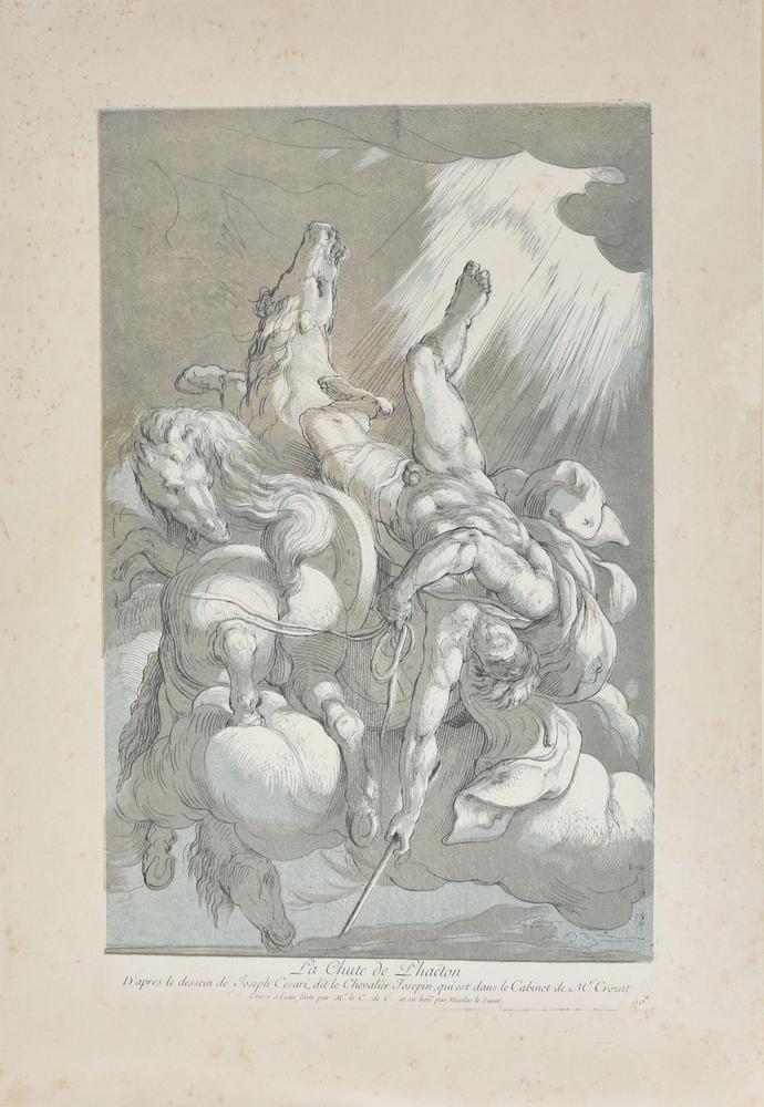 Nicolas Le Sueur DUE INCISIONI Il carro del sole. Xilografia a quattro legni....