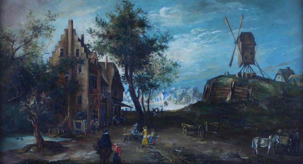 Van Olsen PAESAGGIO FIAMMIGO olio su rame, cm 12,5x23