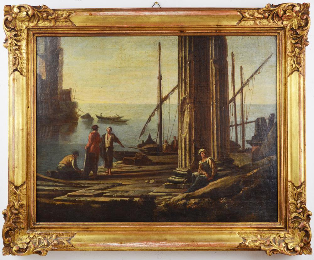 Scuola Italiana del XVIII secolo Marina Olio su tela, cm 40x50