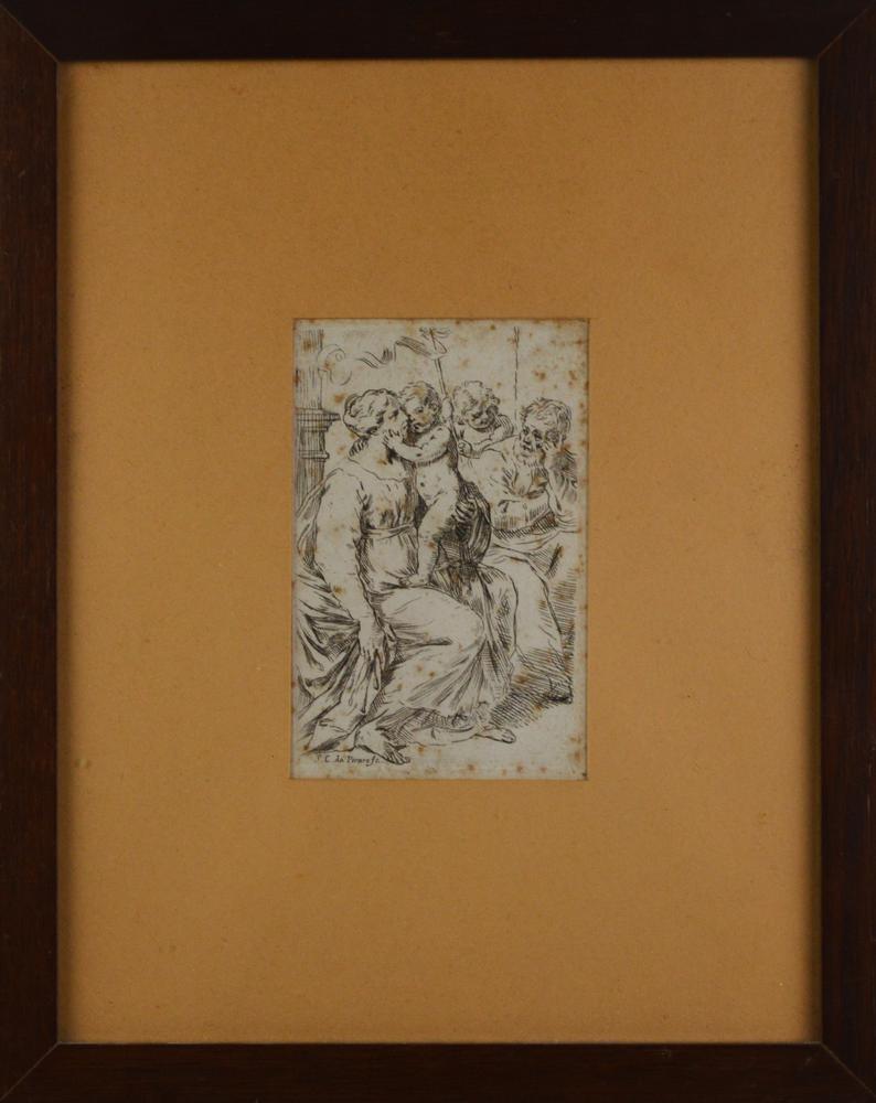 Simone Cantarini SACRA FAMIGLIA CON SAN GIOVANNINO acquaforte, cm 13,5x8,...