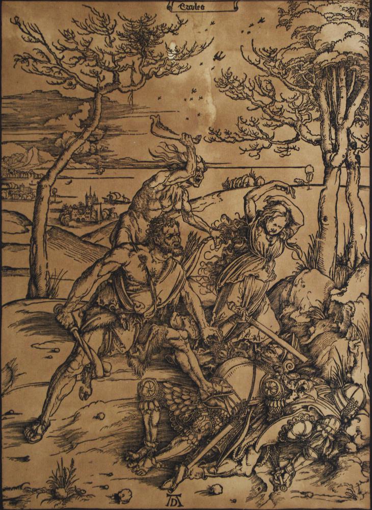 Copia da Albrecht Durer COMBATTIMENTO TRA ERCOLE E CACO xilografia su carta,...