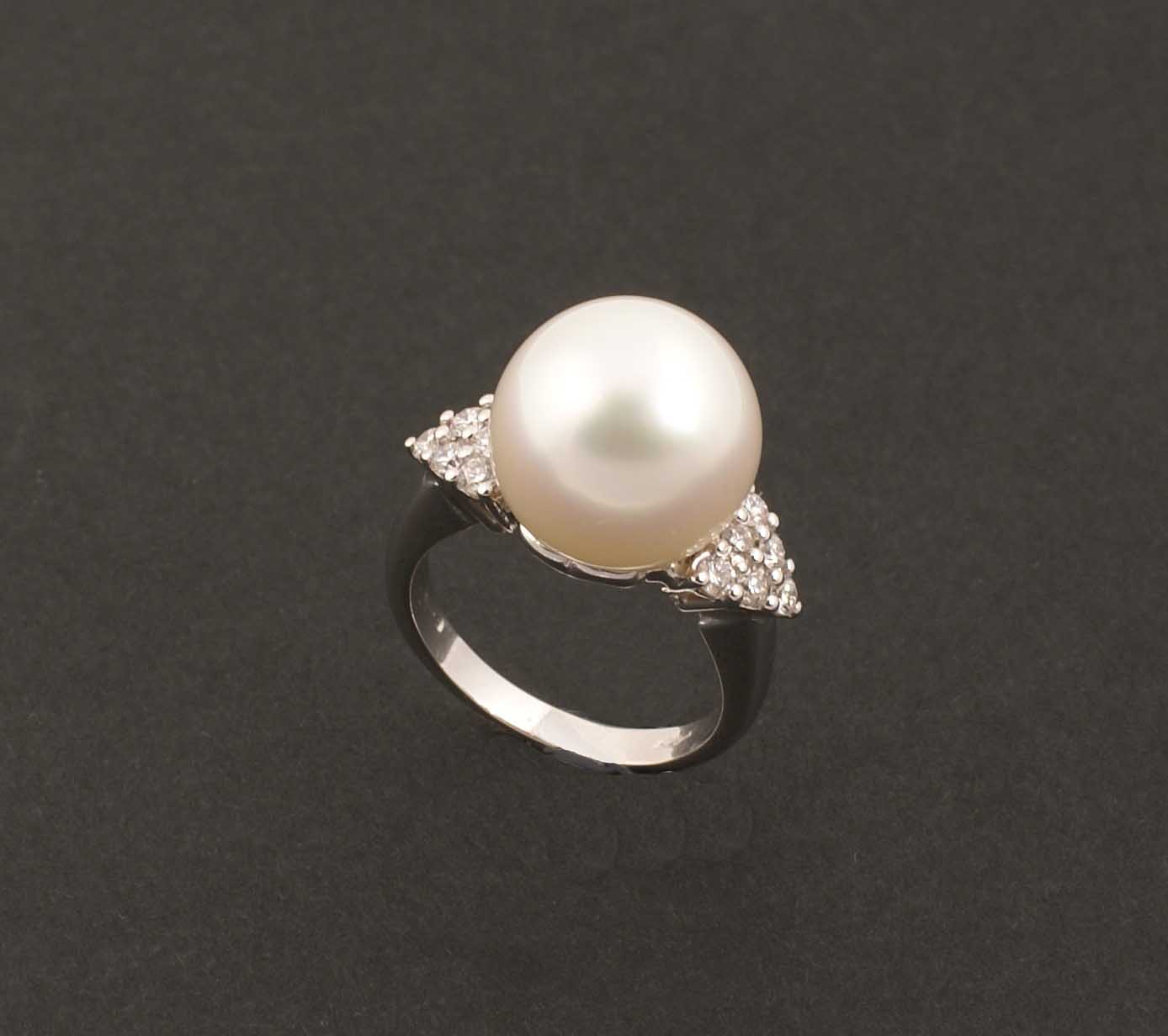 ANELLO IN ORO BIANCO 18KT CON UNA PERLA AUSTRALIANA Di mm.13,5 e diamanti taglio brillante per 0.40 punti circa Peso 9 gr.