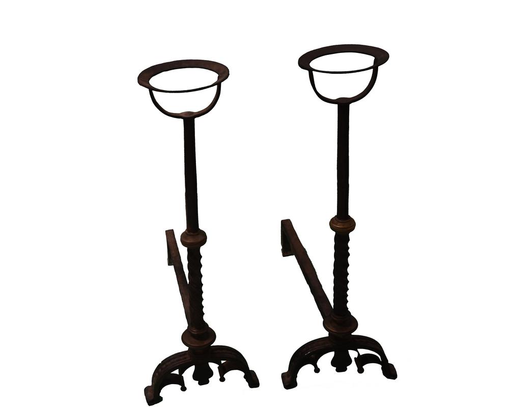 COPPIA DI ALARI DA CAMINO Coppia di alari in ferro forgiato Epoca XIX secolo...