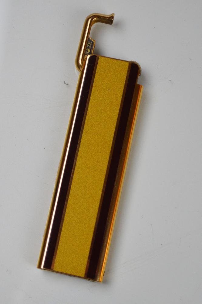 Lotto 28 | ACCENDINO IN METALLO DORATO E SMALTI, JOHN STERLING marchio J.S., cm 8x2 GOLD...