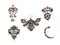 realizzate argento e oro giallo e rosa traforato, decorate in pietre e perle e modellate rispettivamente una a moscone, una a corona, una a mezzaluna e due a volute