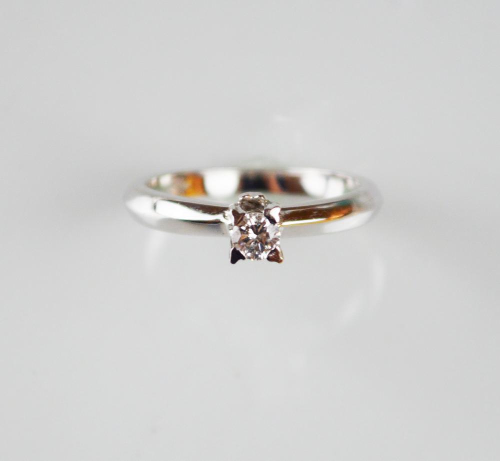 al centro un diamante di forma rotonda a brillante di ct. 0.20 circa colore H-I, punzone 750, mis 15, g 3.5