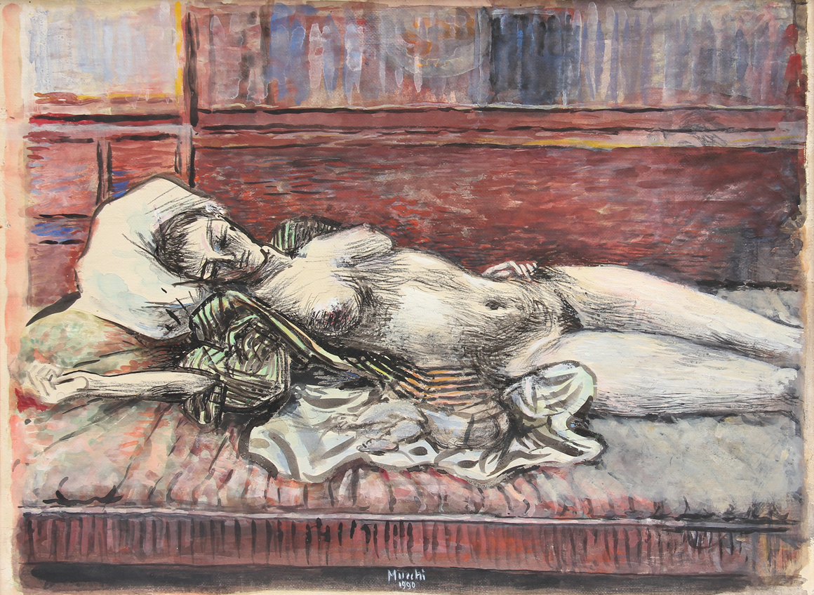 Nuda giacente 1990 tecnica mista su carta intelata cm. 50 x 67