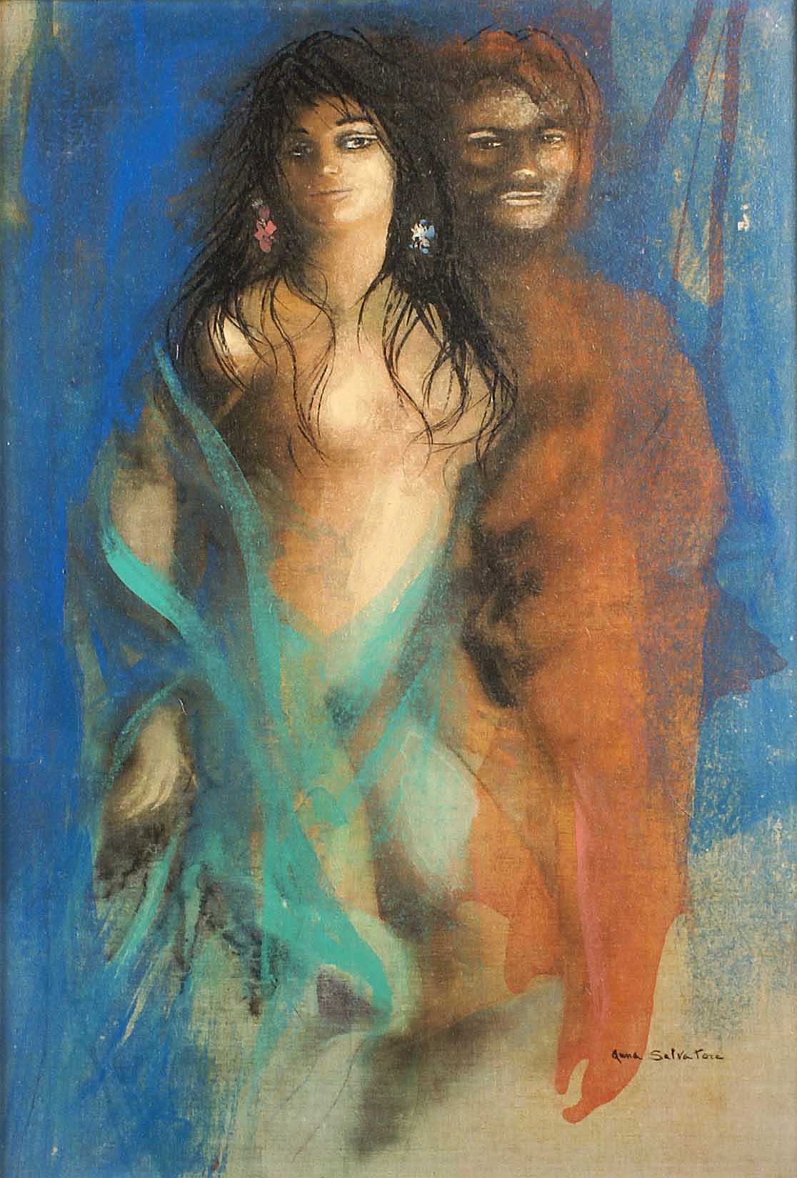 ANNA SALVATORE Roma 1923-1978 "Senza titolo", tecnica mista su tela, firmata in basso a destra e sul retro, entro cornice in legno Dim. 60x40 cm.