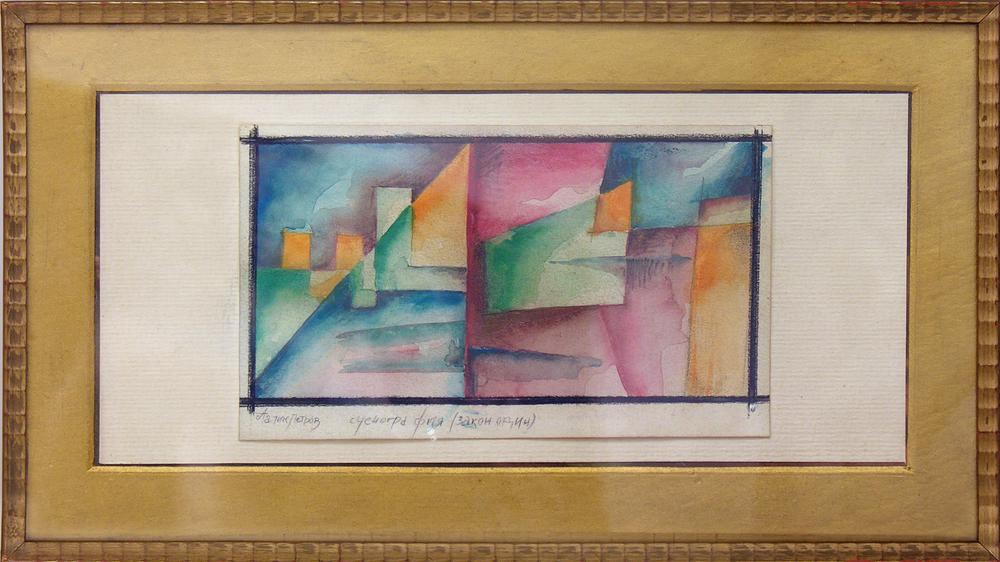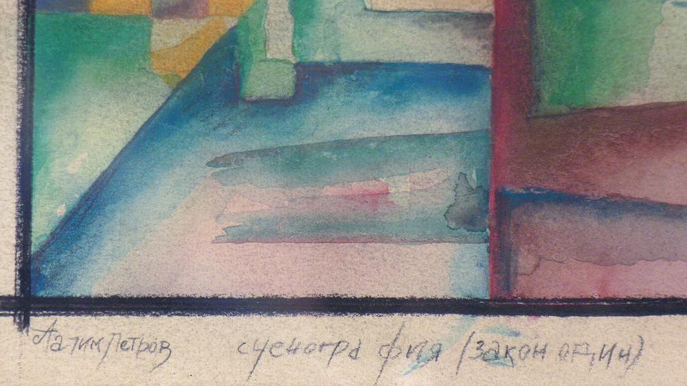 Aalim Petrov BOZZETTO FUTURISTA PER SCENOGRAFIA TEATRALE tecnica mista su...