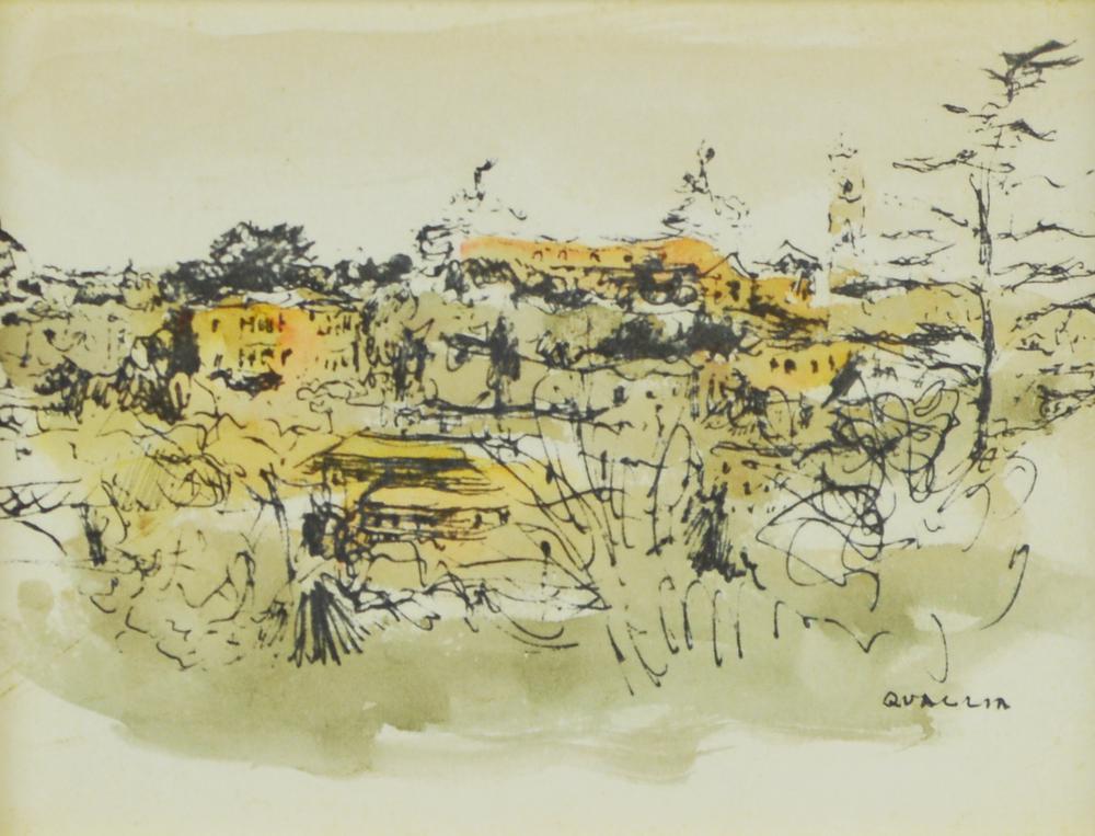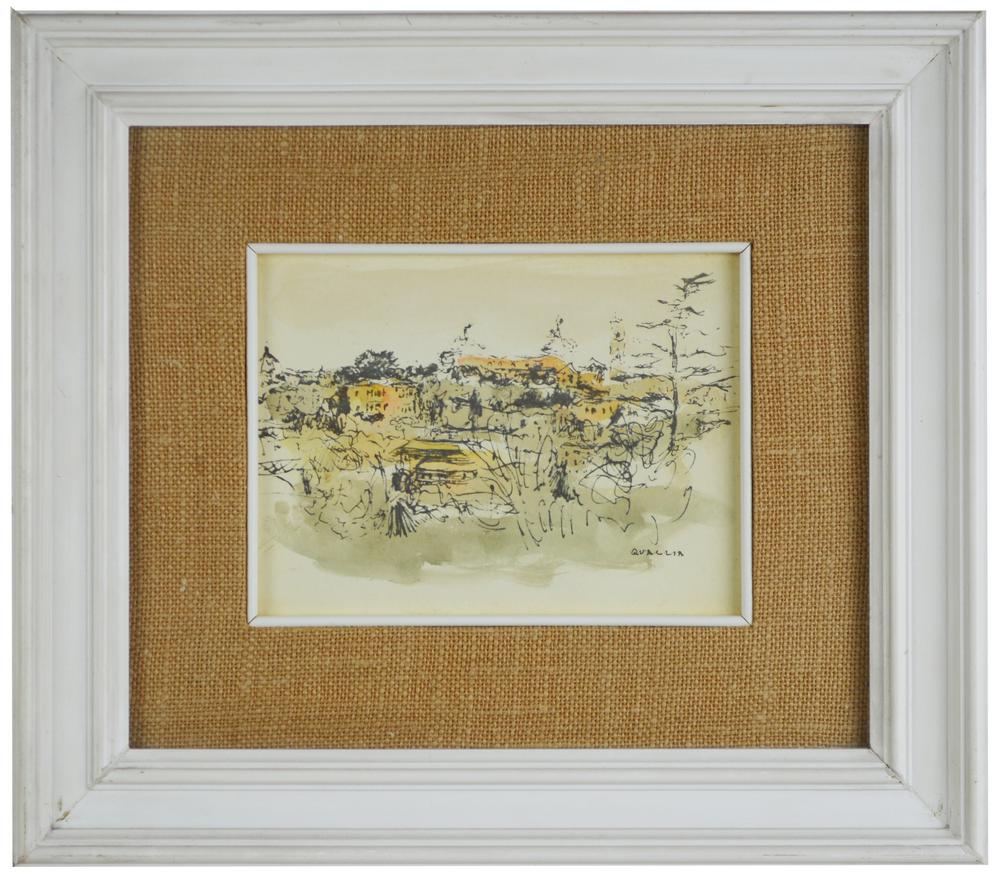 Carlo Quaglia VEDUTA acquerello su carta applicata a compensato, cm 15x19,5...