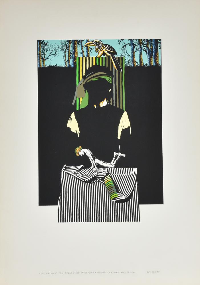 intervento a tempera su impianto serigrafico su carta, cm 70x49,5