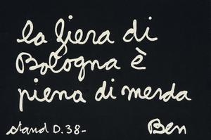 Ben Vautier Napoli 1935 La fiera di Bologna Acrilico su cartoncino nero, cm. 20x29,5 Firma in basso a destra: Ben.