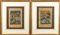 SCUOLA PERSIANA XIX Sec. "Scene di caccia", coppia di antiche pagine miniate dipinte a colori vegetali e oro zecchino su carta, entro cornice Dim. 18x27 cm.