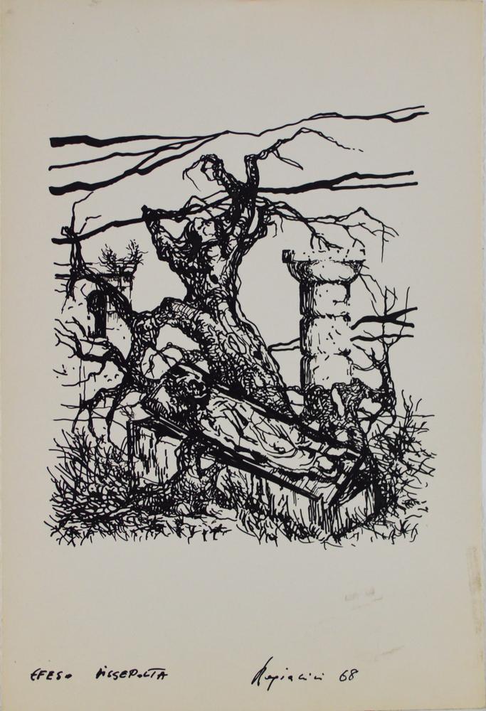Luigi Regianini DISSEPOLTA tecnica mista su carta, cm 30x20 sul fronte: data...