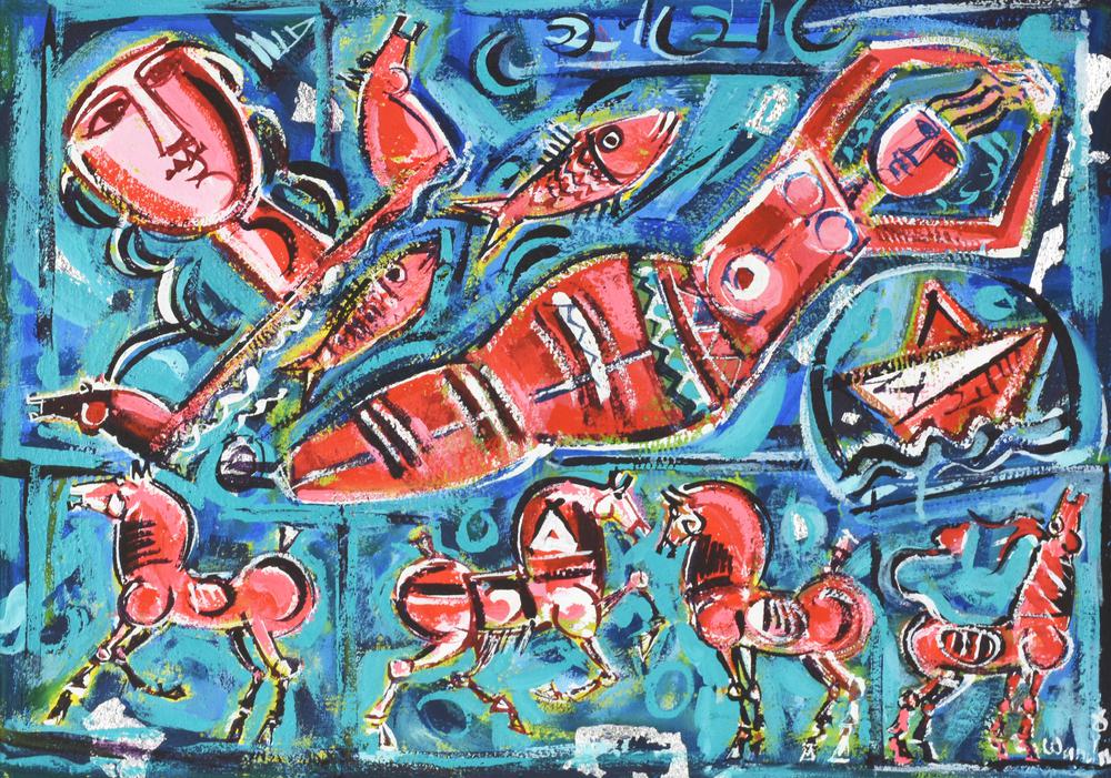 Wasaby SENZA TITOLO tecnica mista su tela, cm 50x70 sul fronte: firma