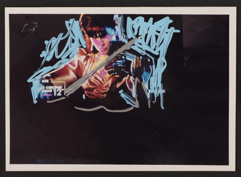 Mario Schifano SENZA TITOLO tecnica mista su fotografia, cm 13x17,5