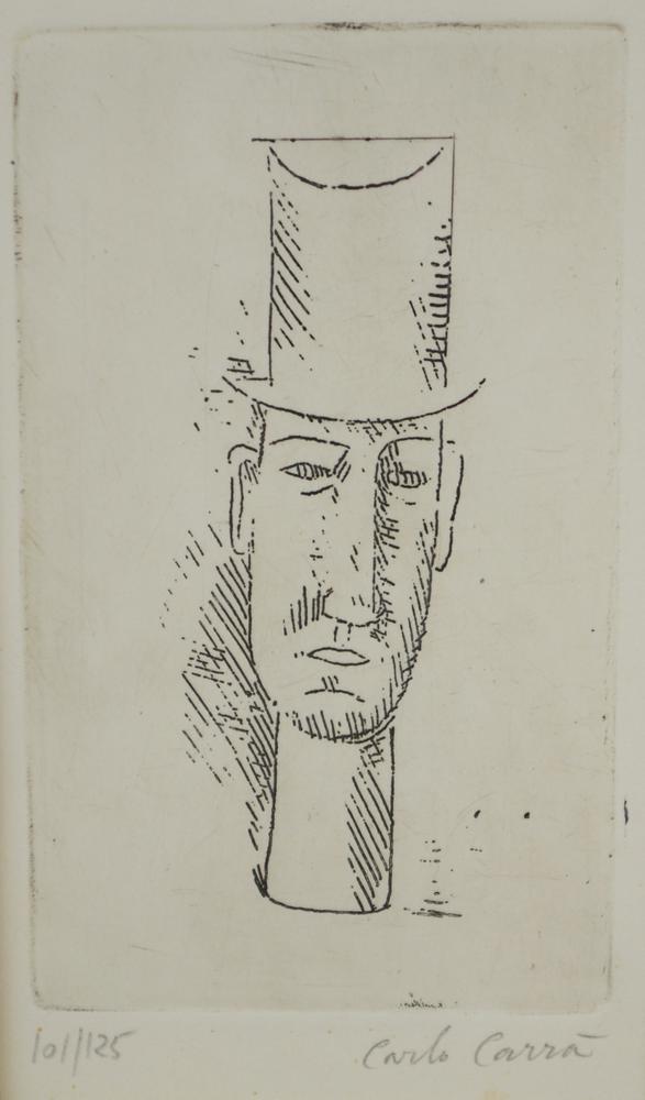 Carlo Carrà FIGURA MASCHILE acquaforte acquatinta, cm 13x8, foglio cm...
