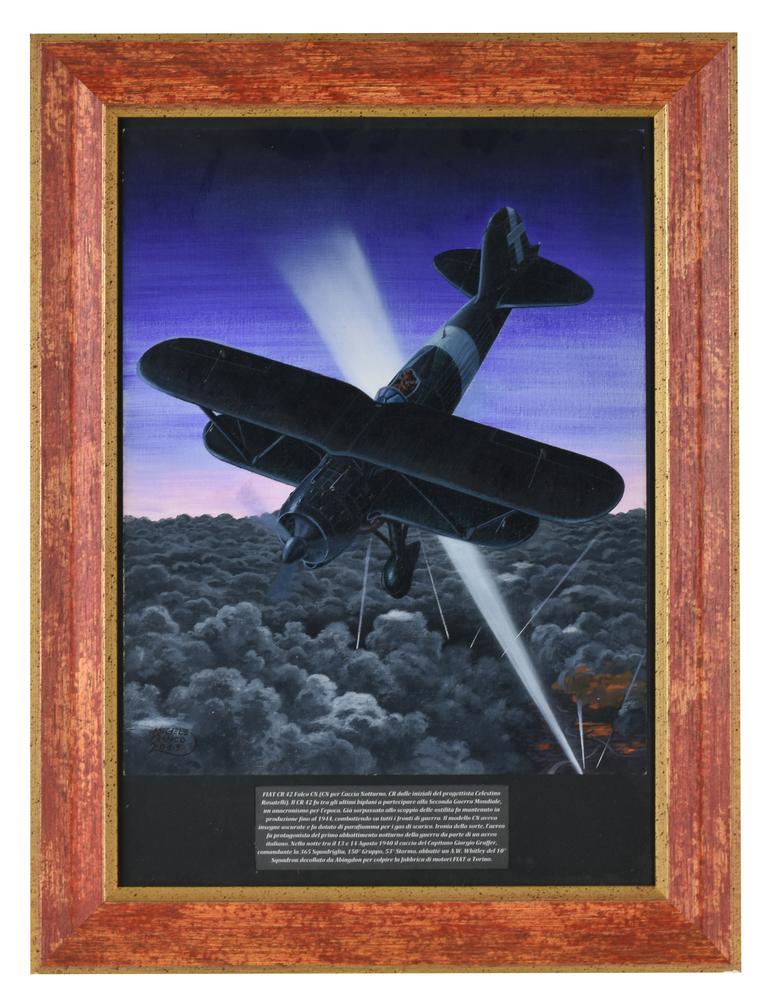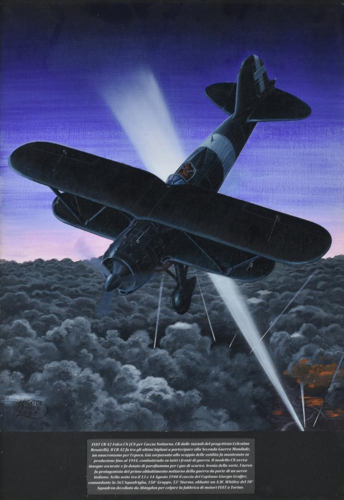 Michele Franco FIAT CR 42 'FALCO' CN 1940 tecnica mista su carta, cm 41x33...