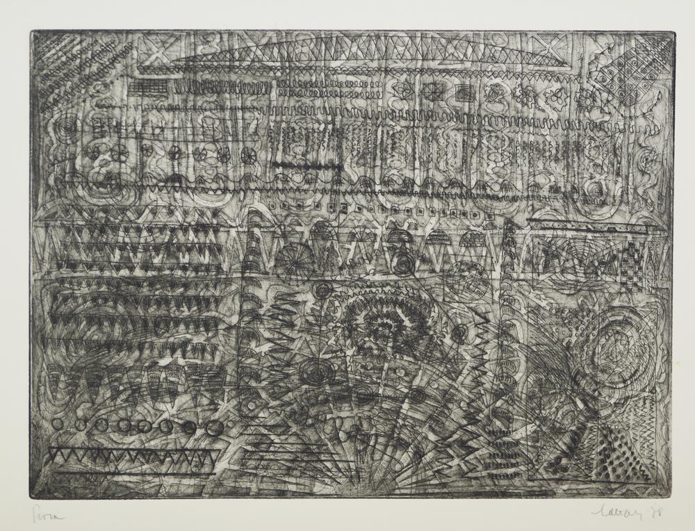 I) Senza titolo. 1978. Acquaforte e acquatinta. mm 293x392. Foglio: mm 340x440.
