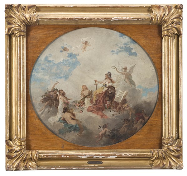 Ernesto Fontana "Allegoria" olio su tela (d cm 57,5) Firmato in basso a sinistr