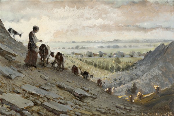 Alessandro Lupo "Al pascolo" 17.5.95 olio su compensato (cm 35x51) Firmato e dat