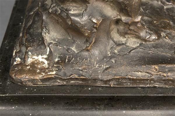 Francesco Pasanisi "L'amico fedele" scultura in bronzo (cm 14.5x19x16) poggiant