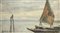 Lotto 30 | Luigi Comolli "Chioggia" 1954 olio su cartone (cm 12x23) Firmato in basso a sini