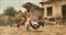 Silvio Poma "In cortile" olio su tela (cm 15,5x27,5) Firmato in basso a destra