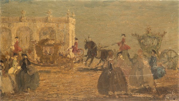 Emma Ciardi "Il corteo" olio su cartone (cm 22x37) Firmato in basso a sinistra