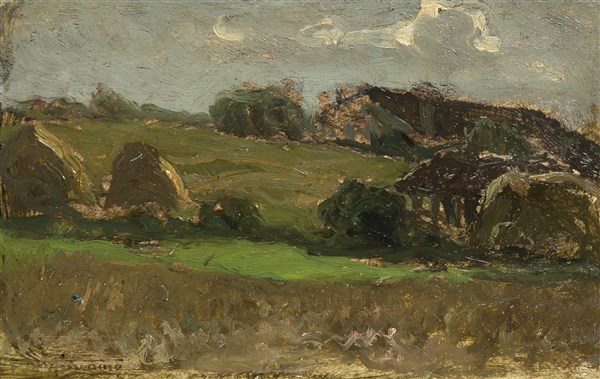 Pietro Fragiacomo "Paese di montagna" olio su cartone pressato (cm 7,5x12) Firm