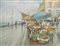 Attilio Pratella "Il mercato" tecnica mista su carta (cm 20x27,5) Firmato in ba