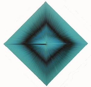 Toni Costa Padova 1935 Dinamica visuale, 1969 Tecnica mista e pvc su tavola, cm. 50x50 Titolo, data e firma al verso su un cartiglio: Toni Costa / "Dinamica visuale" / 50x50 Turchese / 1969 / Toni Costa: cinque timbri Toni Costa / Padova. Opera registrata presso l'Archivio Toni Costa, con n. 69/15.