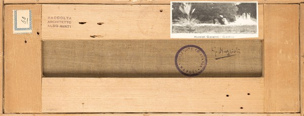Giovanni Muzzioli "Giardino" olio su tela (cm 13x32,5) Firmato in basso a destr