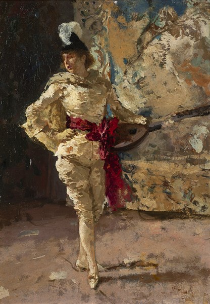 Mosè Bianchi "Paggio" olio su tavola (cm 31x22,5) Firmato in basso a destra Pr