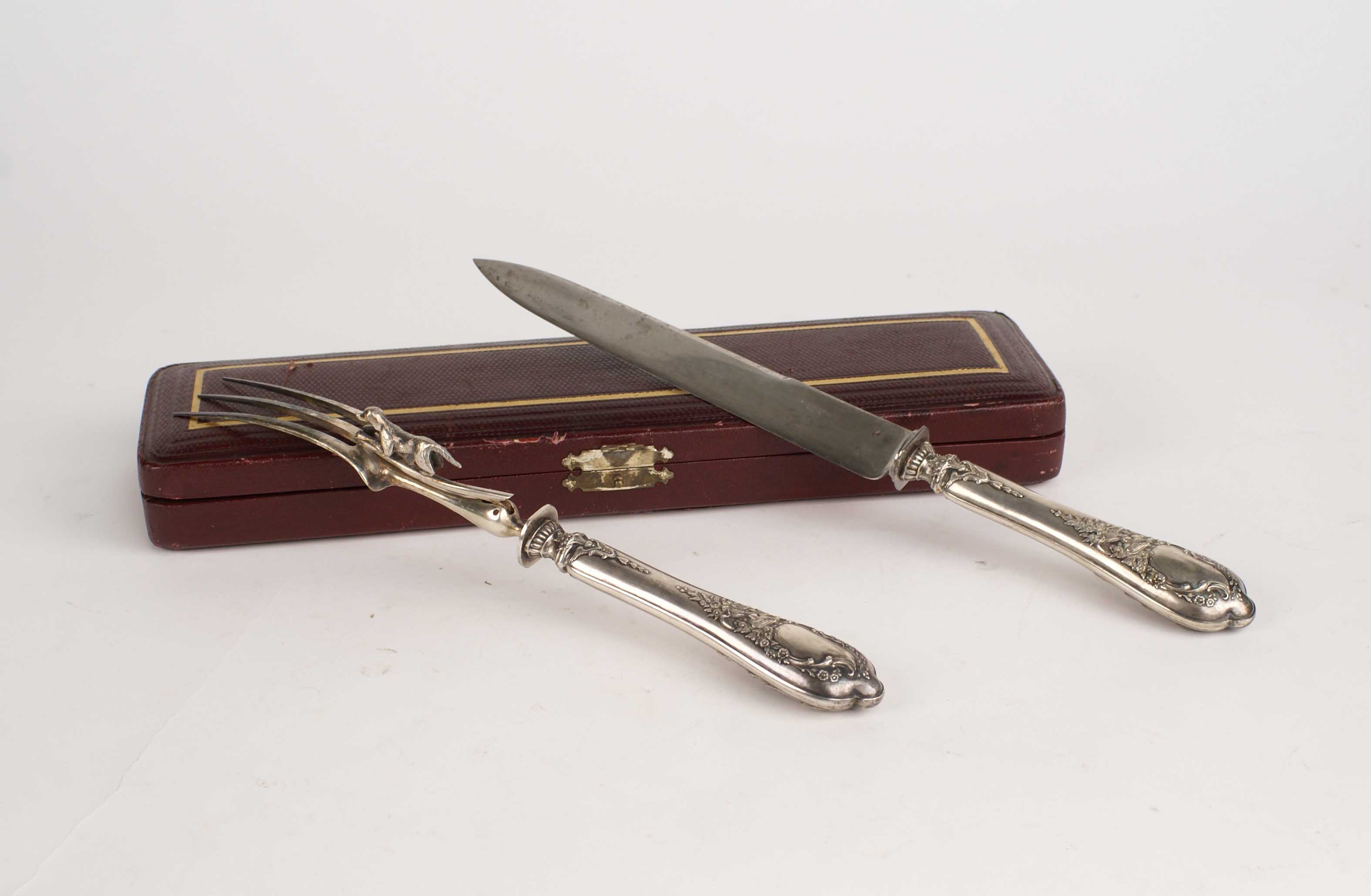 SET POSATE PER ARROSTO Con manici in argento sbalzato, entro astuccio