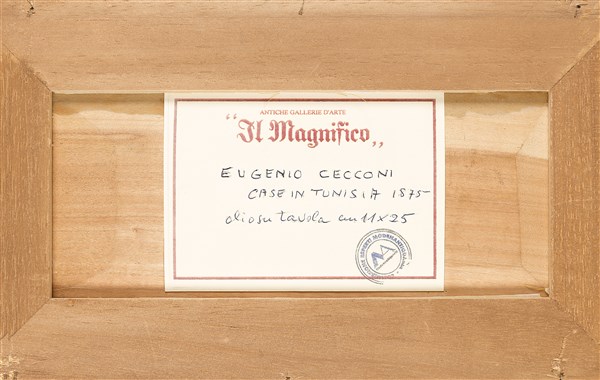Eugenio Cecconi "Case in Tunisia" olio su tavola (cm 11x25) Siglato in basso a