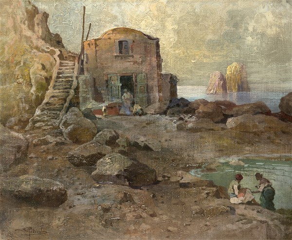 Salvatore Petruolo "Piccola marina di Capri" olio su tela applicata a cartone (