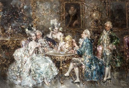 Juan Pablo Salinas y Teruel "La partita a carte" Roma olio su tela (cm 35x51,5)
