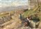 Leonardo Bazzaro "Le lavandaie" olio su tela (cm 36x50) Firmato in basso a sini