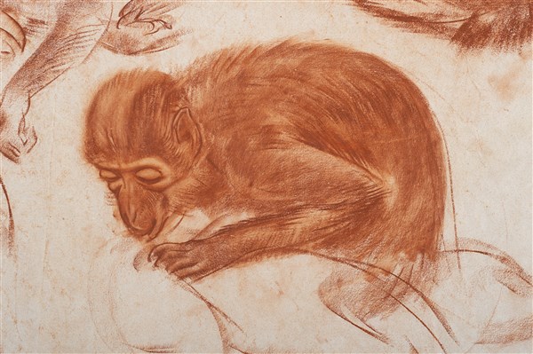 Alexander Jacovleff "Studio per scimmia" 1915 disegno a sanguigna su carta (cm 8