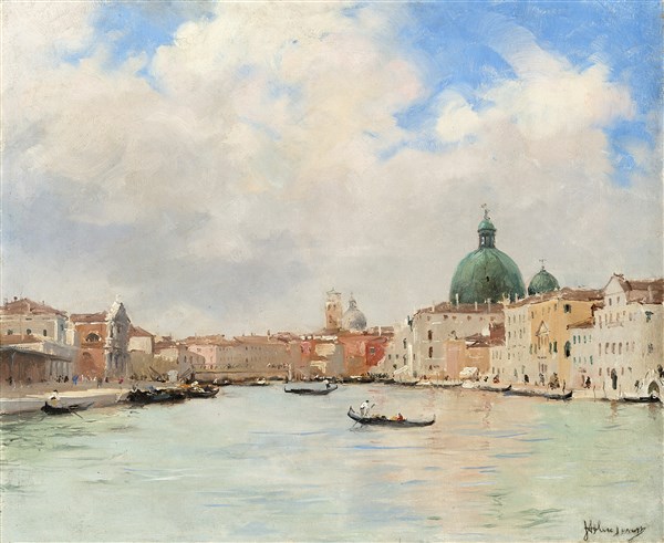 Italico Brass "Venezia, Canal Grande" olio su tela (cm 37x45) Firmato in basso