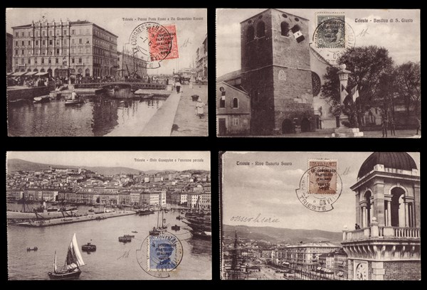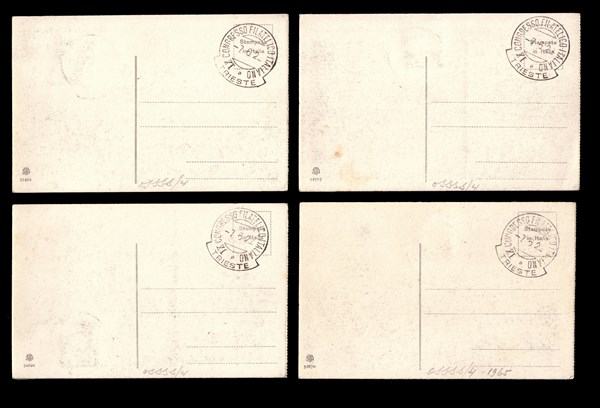 "Congresso Filatelico". Serie completa di 4 valori su cartoline non viaggiate