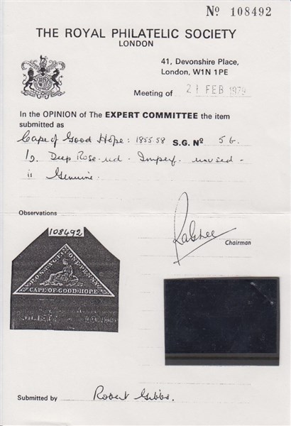 CAPO DI BUONA SPERANZA 1855/1858 1d. rosso rosa scuro (deep rose-red), tiratura