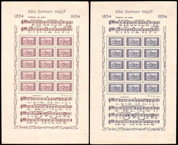 CECOSLOVACCHIA 1934"Centenario dell'inno nazionale". Serie completa di 2 fogli