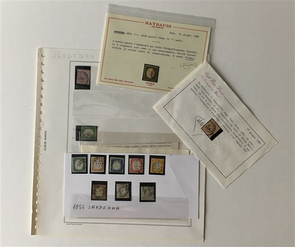 Lotto di buoni esemplari del periodo, tra cui Sardegna 3 lire usato, Parma Governo Provvisorio 80c. nuovo e Sicilia 5gr. prima tavola usato. Alcuni certificati, in una cartelletta. Da esaminare