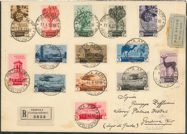 COLONIE ITALIANE: LIBIA 1932/1938 "Fiera di Tripoli". Le serie su busta delle e
