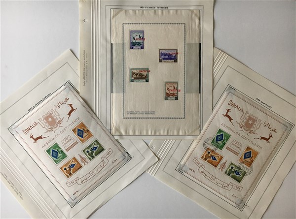 SOMALIA AFIS 1951/1959 Insieme formato dal foglietto n. 1 soprastampato "FACSIM