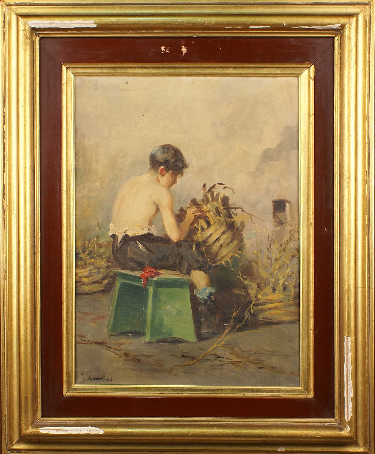 TEMISTOCLE LAMESI Italia 1870 - 1957 "Bambino con cesta", olio su tela,...